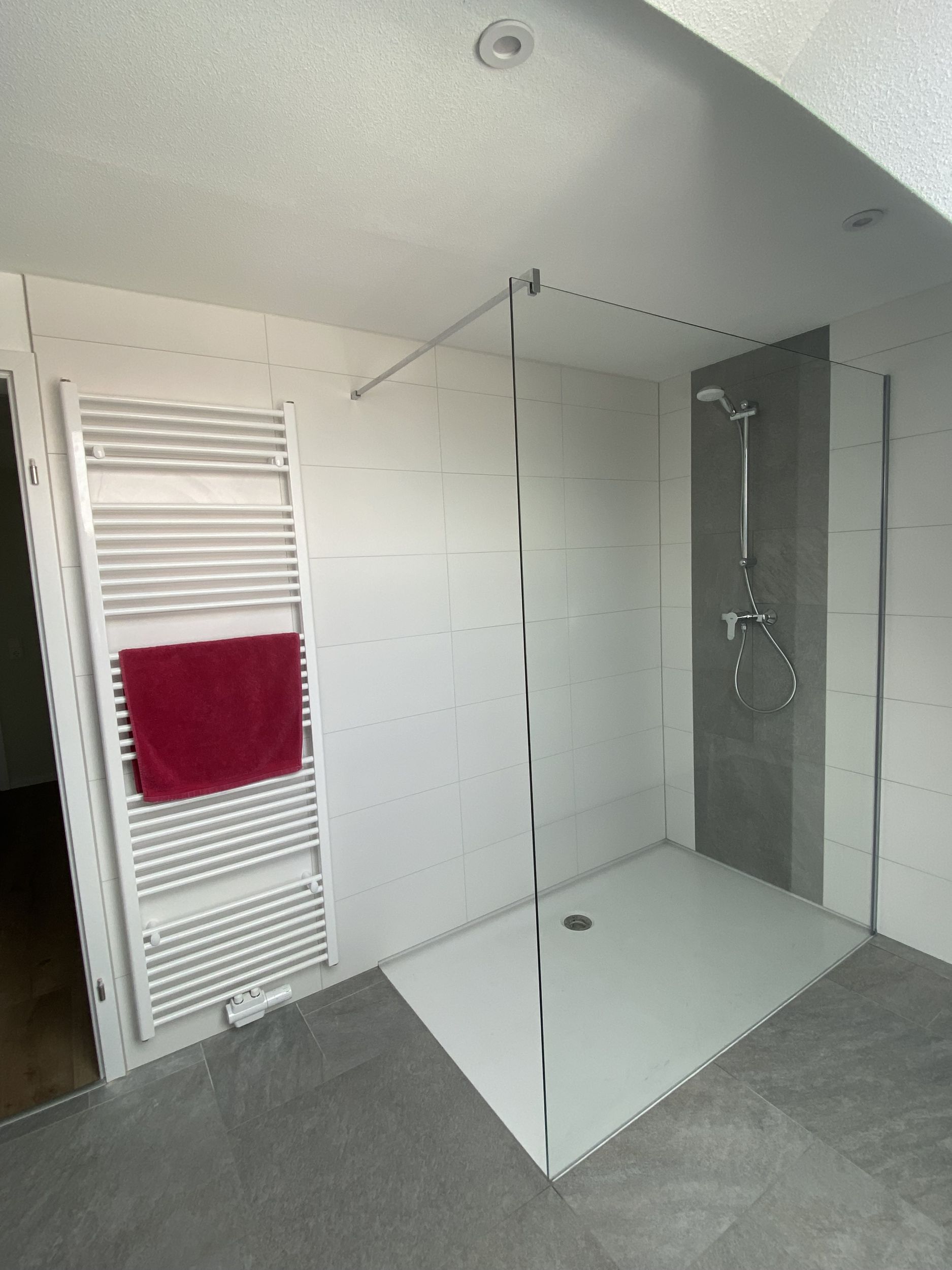 Duschabtrennungen werden auf Maß angefertigt, auch als Sonderlösungen. Sie bestehen aus Sicherheitsglas mit meist flächenbündigen Beschlägen, so dass sie leicht zu reinigen sind.